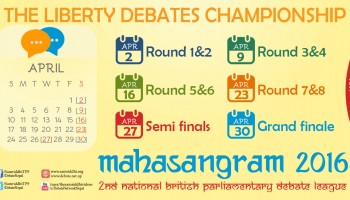 The finals of The Liberty Debates Championship – MahaSangram 2016 will take place on April 30, 2016 at Islington College, […]
