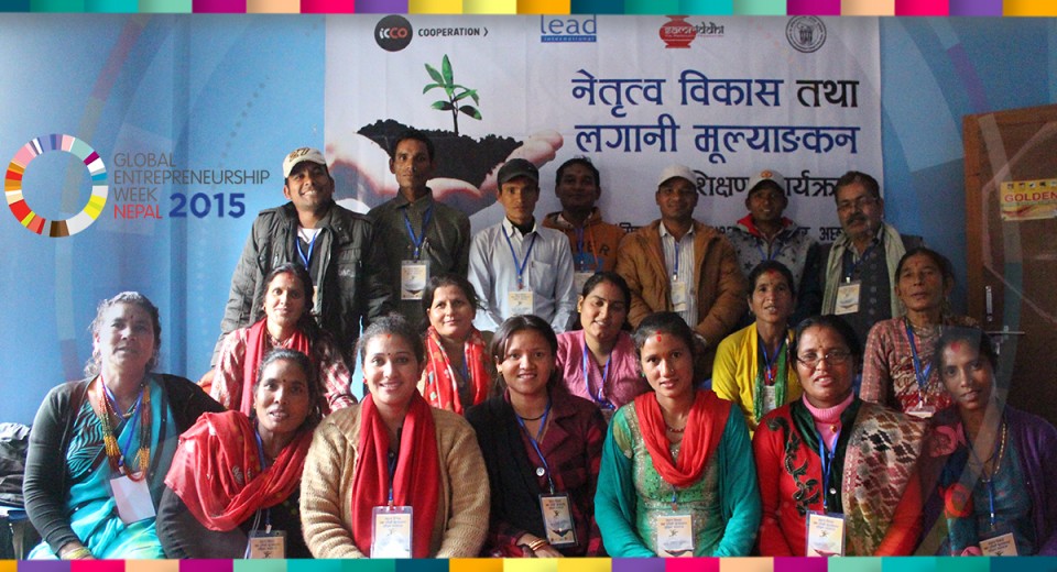 Samriddhi partnered with Lead International and local partner YES Nepal to make #GEW2015 a special undertaking and therefore, for the first time, GEW celebration reached rural Nepal where we celebrated it with 41 entrepreneurs from two districts of rural Far Western Nepal’s Accham and Kailali (usually known for their remoteness, poverty and high out-migration). Lead International, which is a professional enterprise solutions company, has been a long-standing partner to Samriddhi since the very first celebration of GEW in 2010 and is known for its enterprise solutions trainings.